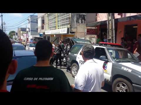 Curiosos que assistiam a ação da polícia militar fizeram uma filmagem amadora no momento em que o bandido se entrega e é colocado na mala da VTR da Força Tática.
